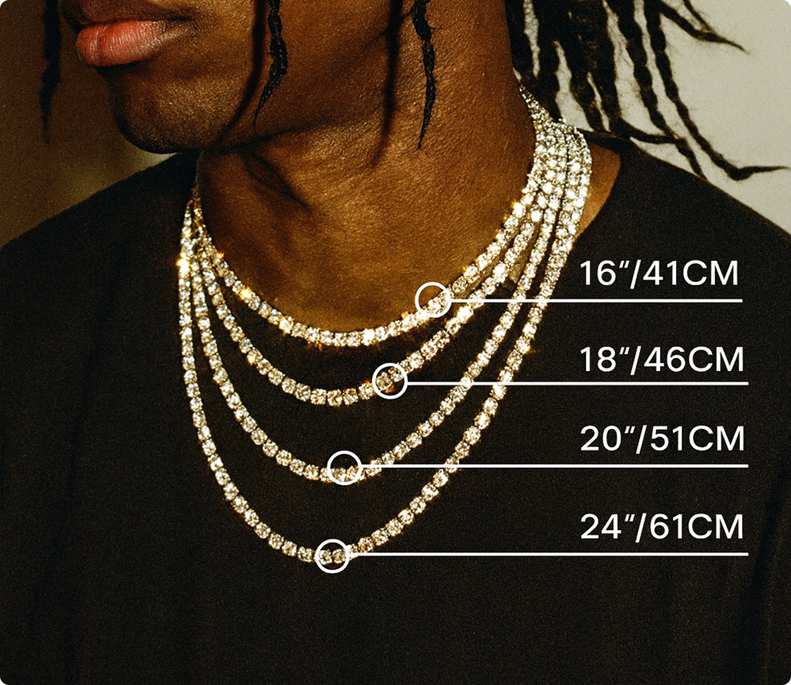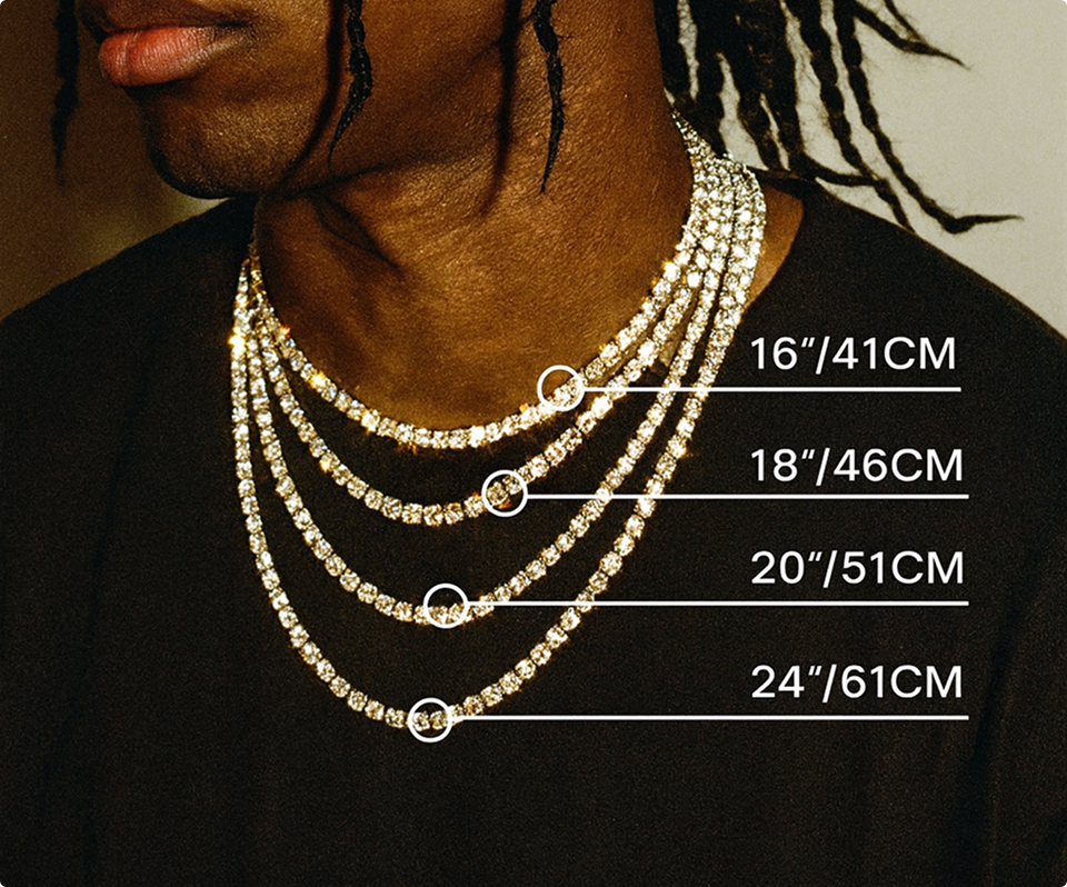 Measure your neck where you want the chain to sit, then add 2-4 inches for comfort.
