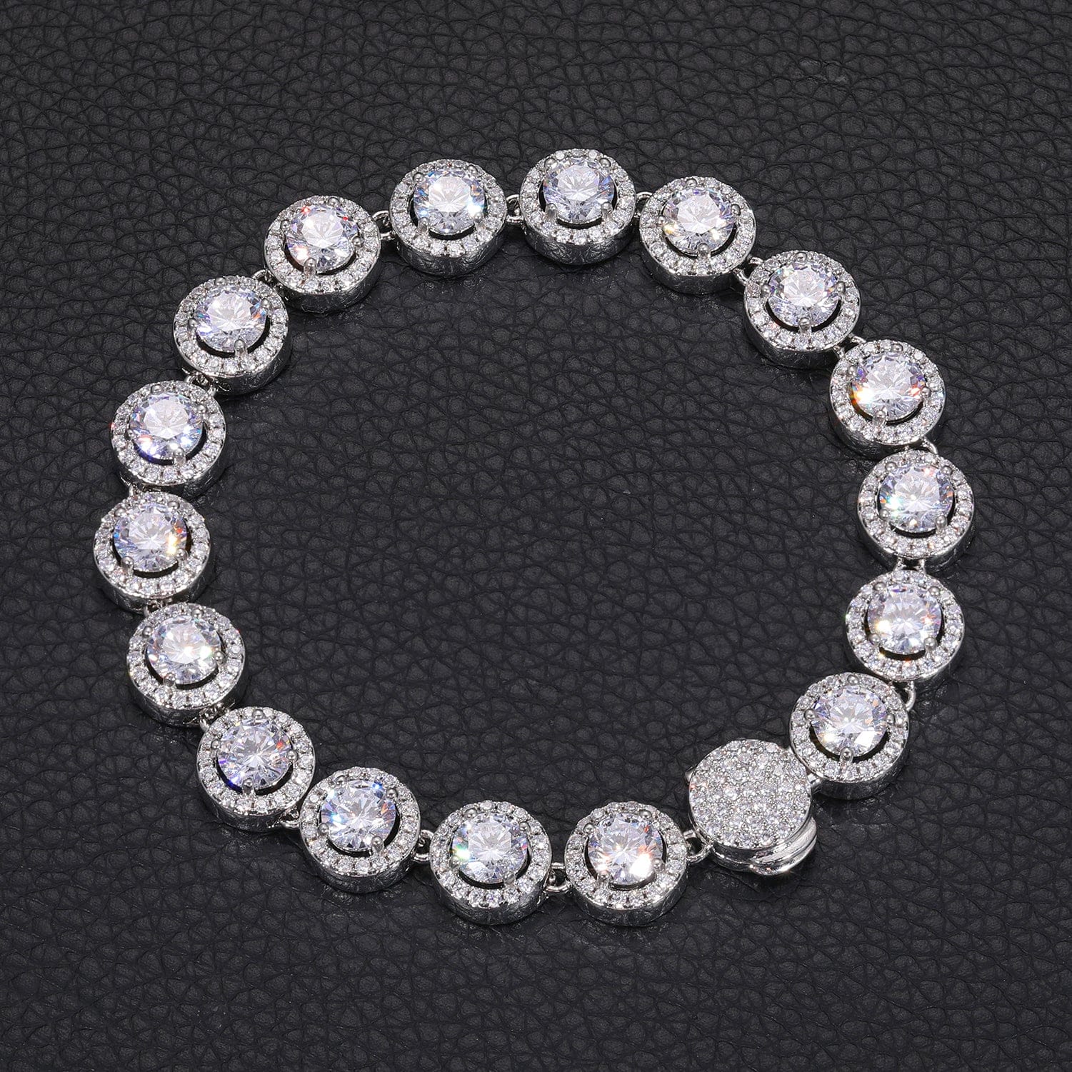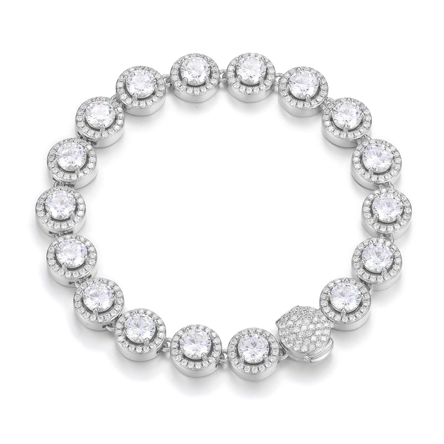 The Nocta Vince Round Halo Tennis Bracelet brings the same radiant halo design to the wrist, giving you a clean, jewelry-grade sparkle from every angle. Each round bezel-set stone is surrounded by a finely detailed micro-pavé halo, adding depth, shine, and a touch of luxury without feeling overly flashy.