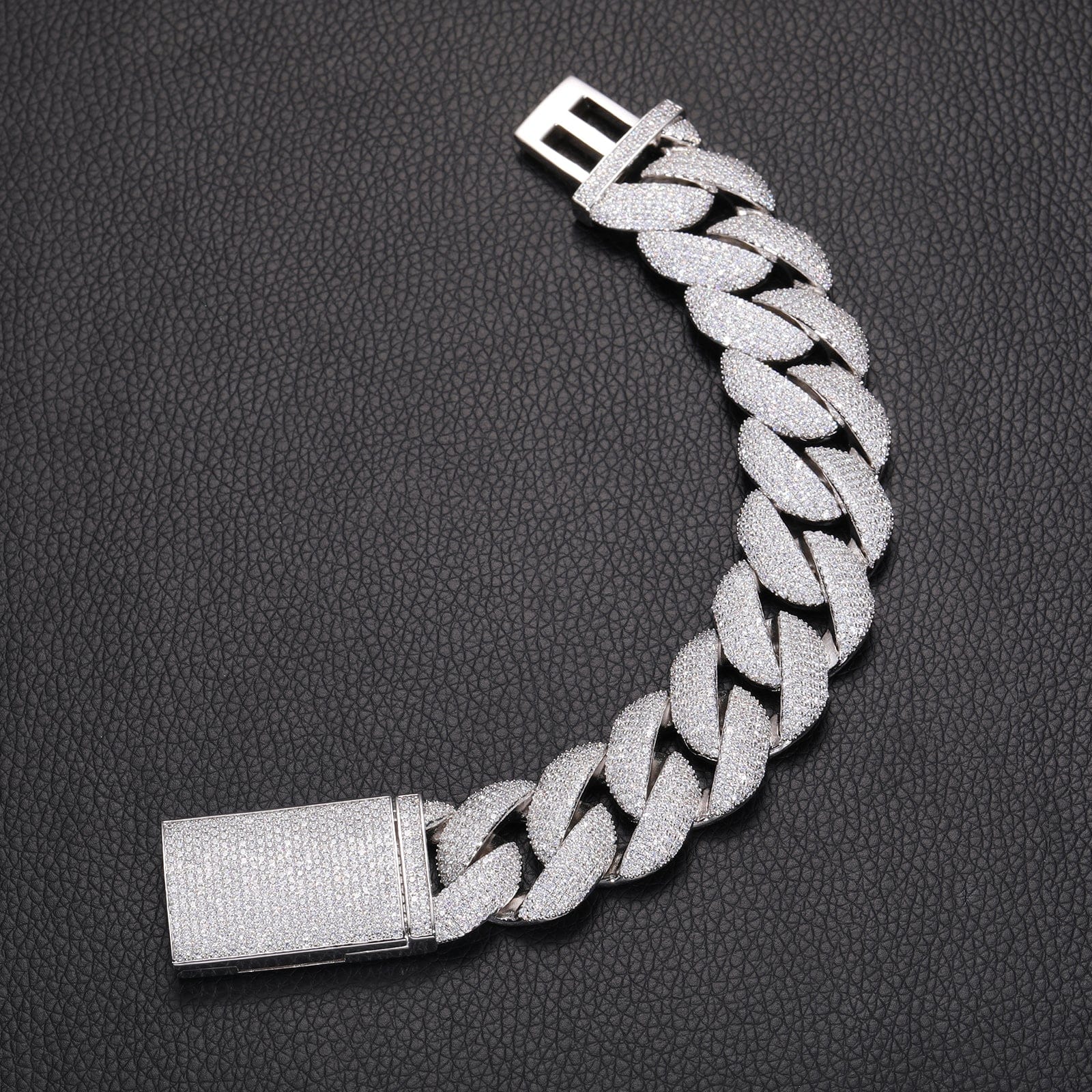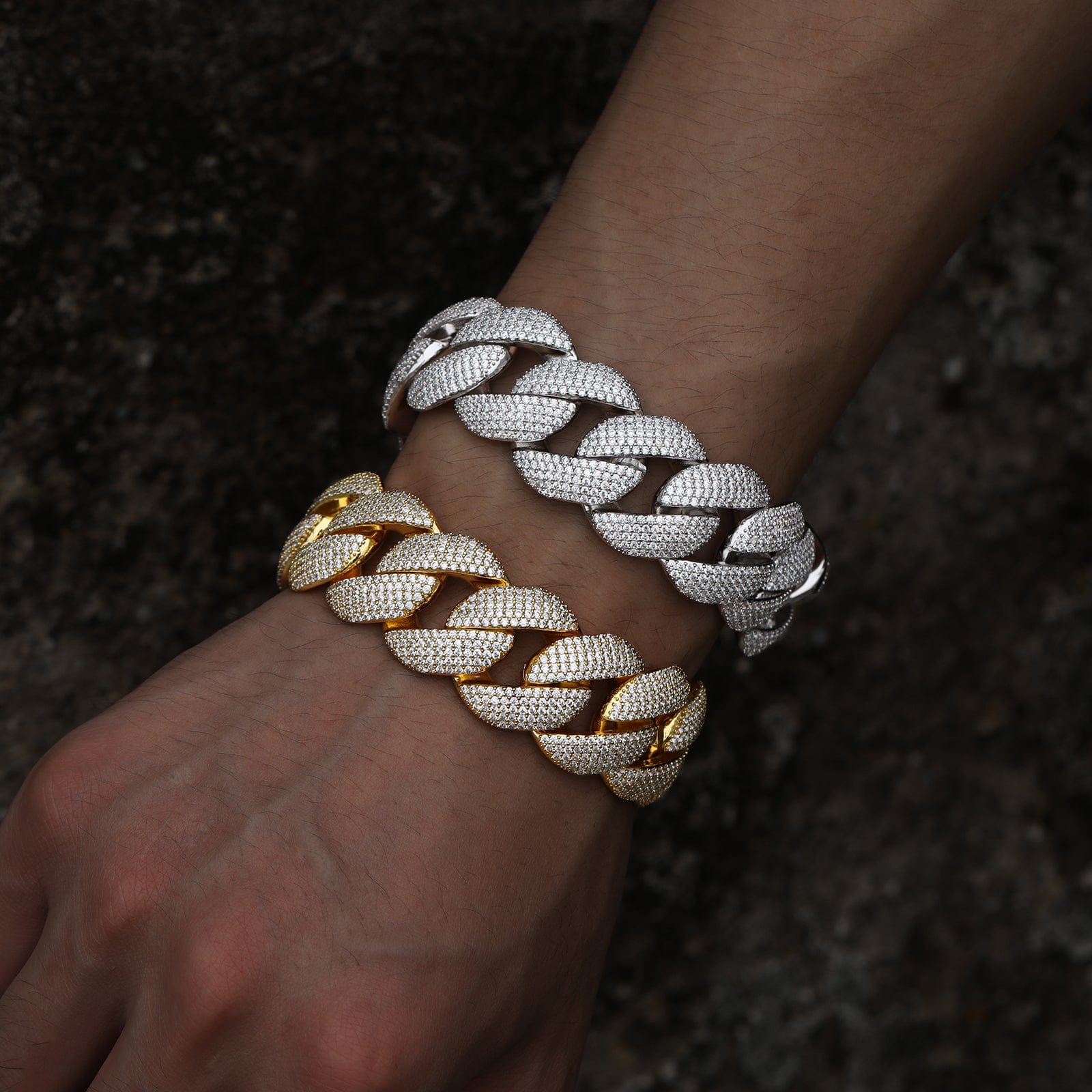 The Nocta Vince 22MM Empyrean Pavé Cuban Bracelet delivers bold presence and luxury-level shine in a wrist-ready design. Each oversized 22MM link is fully covered in micro pavé–set CZ stones, creating a bright, clean sparkle that stands out instantly. Available in polished gold and silver finishes, this bracelet brings a premium, high-impact look perfect for streetwear, events, and statement styling.