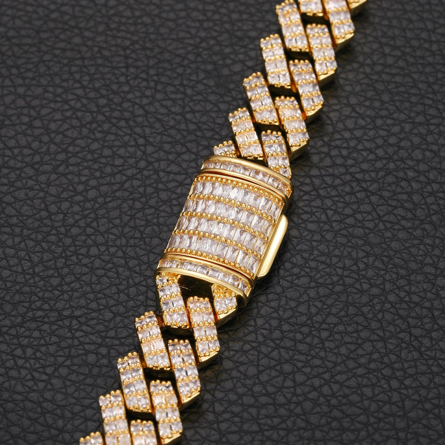 The Nocta Vince Vantage Cuban Chain delivers clean, high-impact shine with its open-link prong setting and triple-row arrangement of round-cut 5A CZ stones. Each link is carefully crafted to maximize light reflection, giving the chain an intense brilliance without feeling overly heavy.