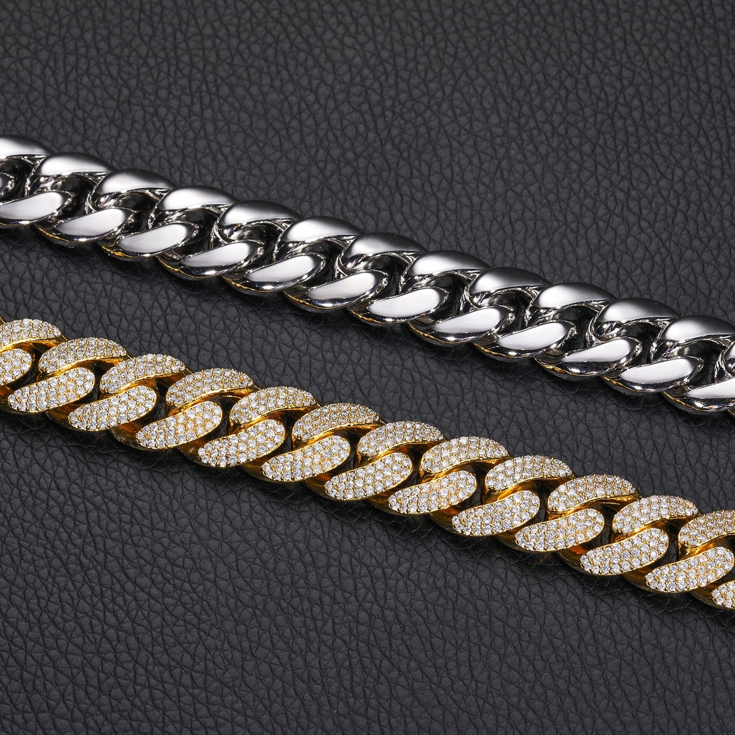 The Nocta Vince 15MM Miami Double-Row Cuban Chain takes classic Cuban style and gives it a sleek, luxury refresh. Each link is covered in a double-row micro pavé CZ setting, creating a bright, consistent shine without overwhelming the design. The 15MM width gives it just the right amount of presence bold, polished, and perfect for everyday flex.