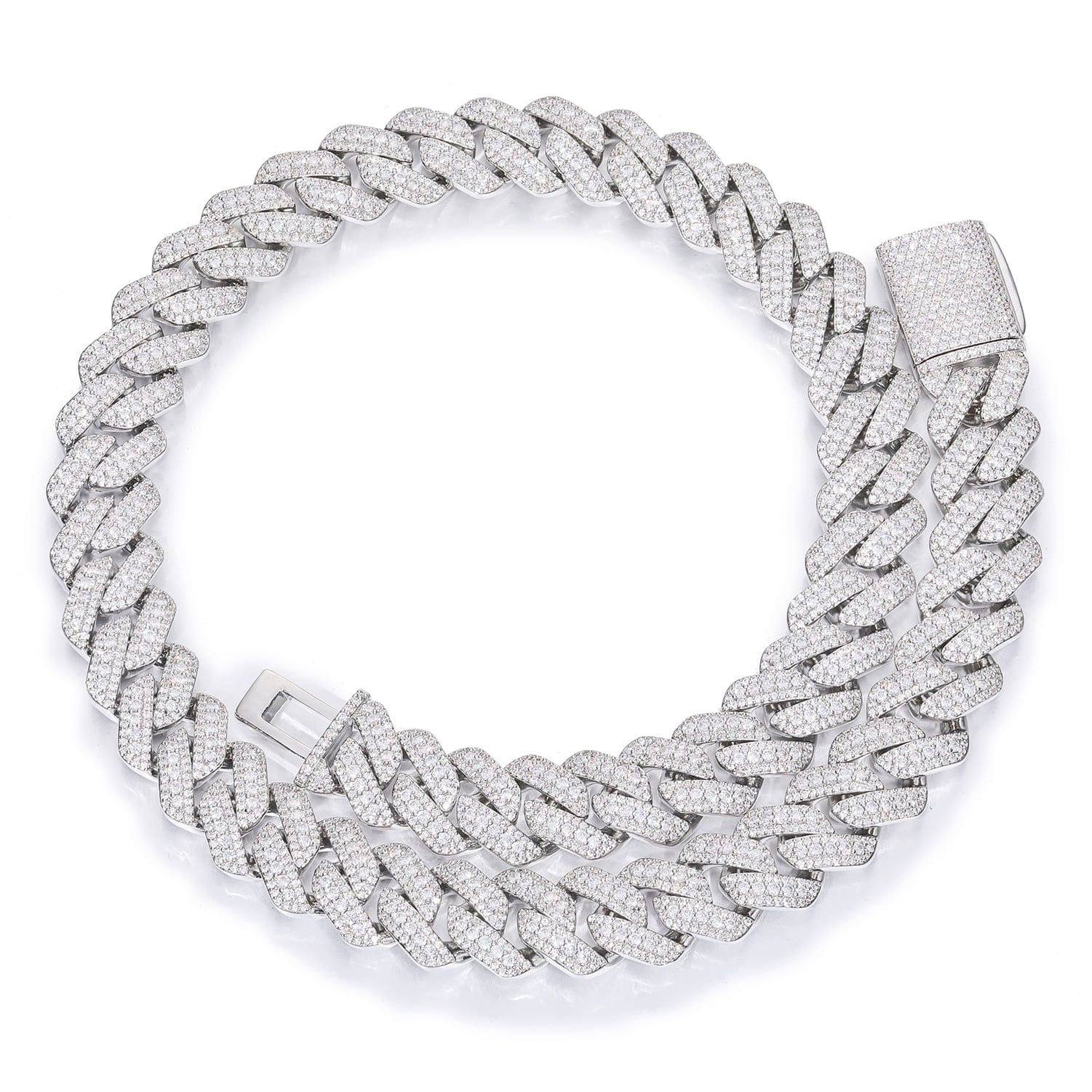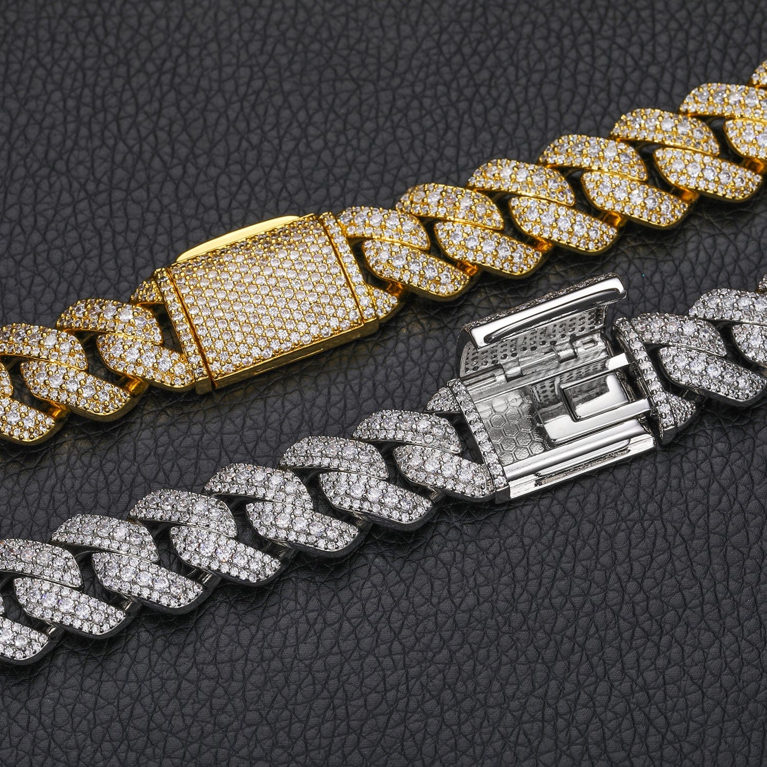 The Nocta Vince 15MM Spina Cuban Chain blends classic Cuban styling with a full luxury upgrade. Each link is stacked with a triple-row micro pavé CZ layout, creating a dense, even shine that hits from all directions. The 15MM width gives it a bold, confident profile while still keeping the chain wearable for everyday outfits.