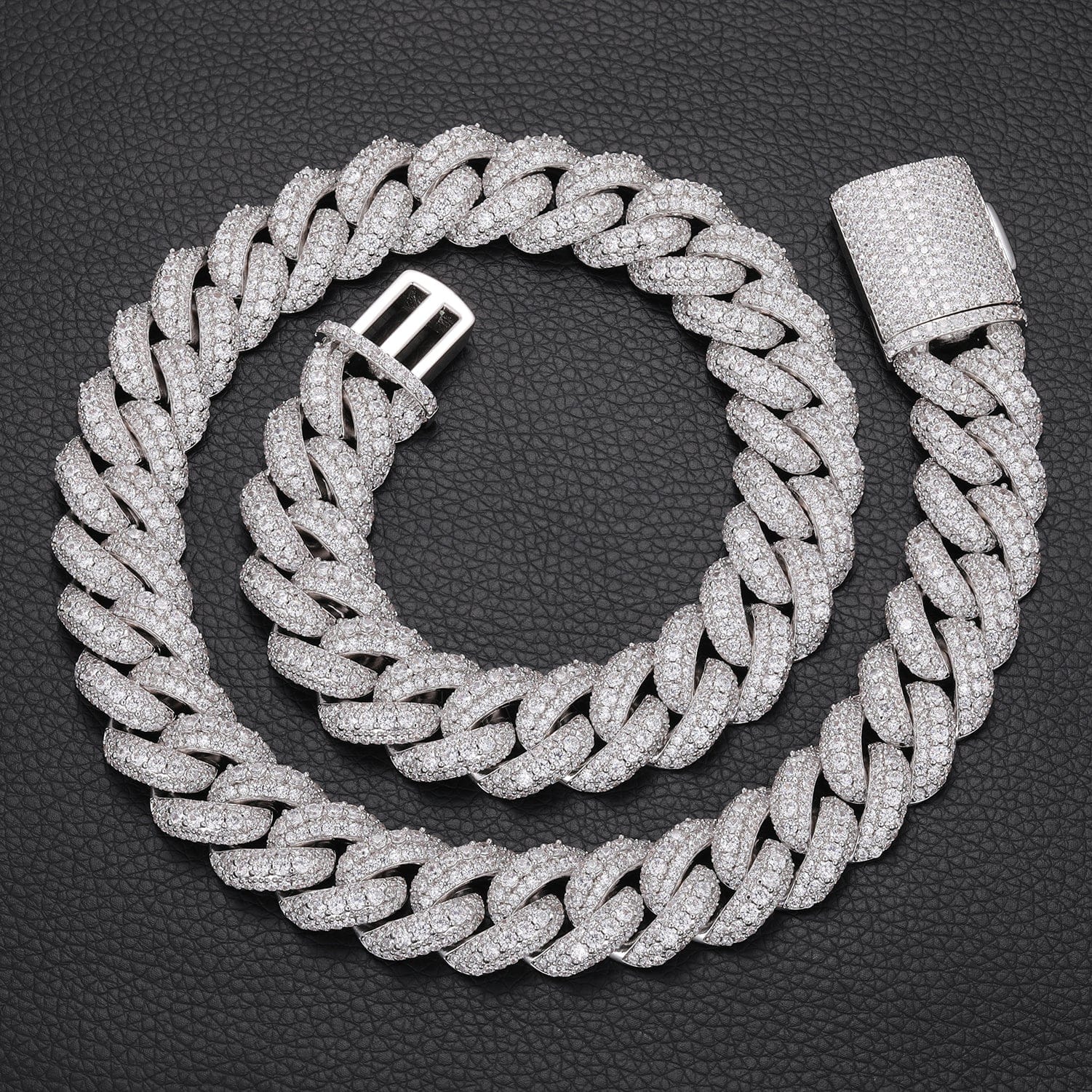 Make a bold statement with this Nocta Vince 18mm Forte Cuban Chain, expertly crafted with a triple-row micro pavé CZ setting that delivers an intense, eye-catching shine from every angle. Each link is designed to maximize brilliance, giving the chain a luxurious iced-out appearance worthy of any high-end collection.