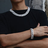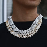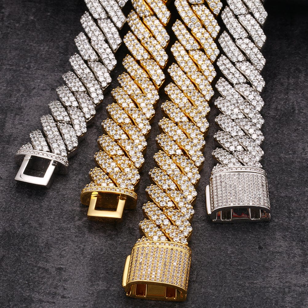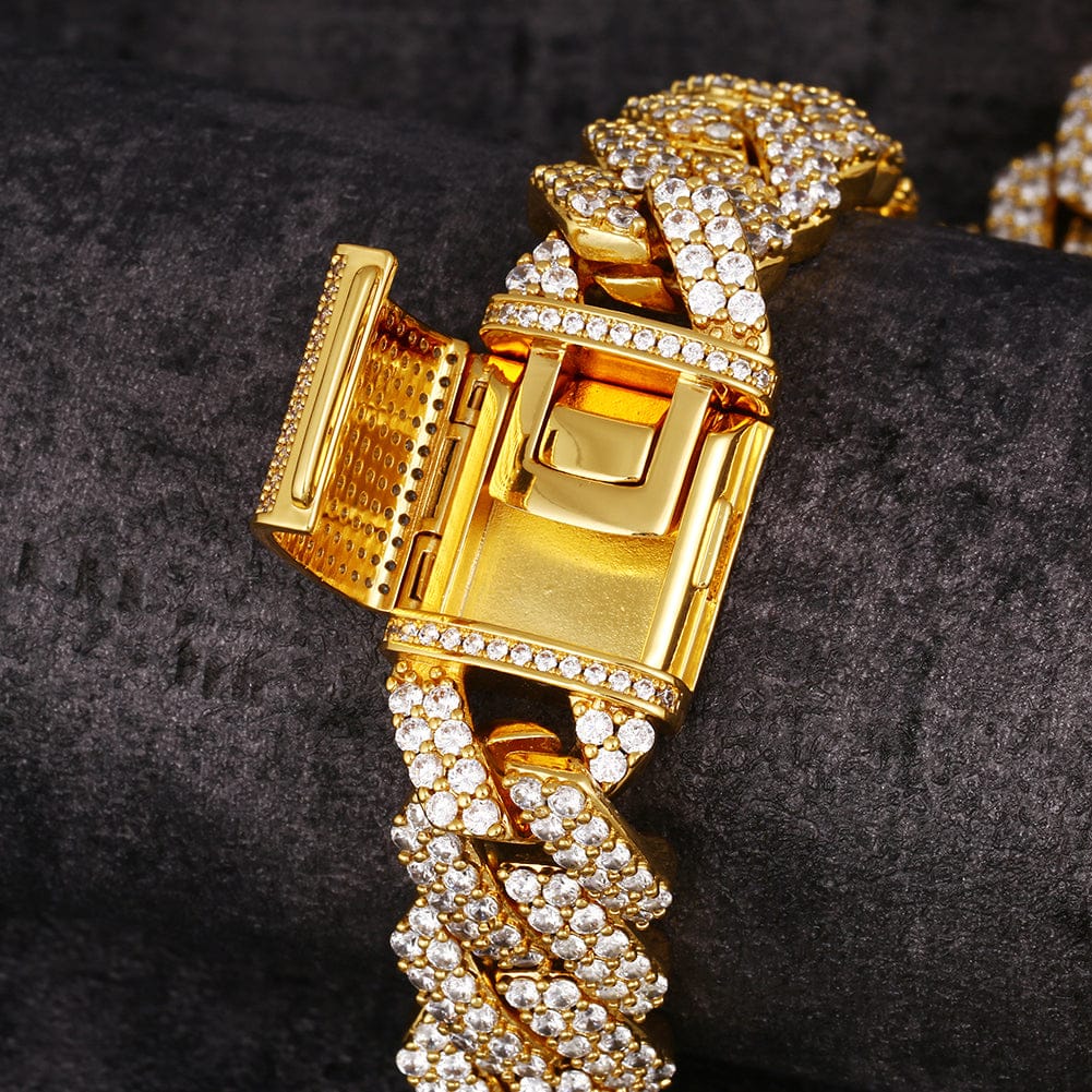 The Nocta Vince 20MM Noctavince Doré Pavilion Cuban Chain delivers an extreme luxury look with its oversized profile and fully iced design. Each wide 20MM open-link Cuban is packed with triple-row micro pavé 5A CZ stones, creating a continuous wall of brilliance that hits from every angle. The prong-set technique lifts each stone for extra light exposure, giving this chain a brighter, sharper shine than standard pavé Cubans.