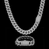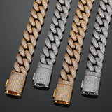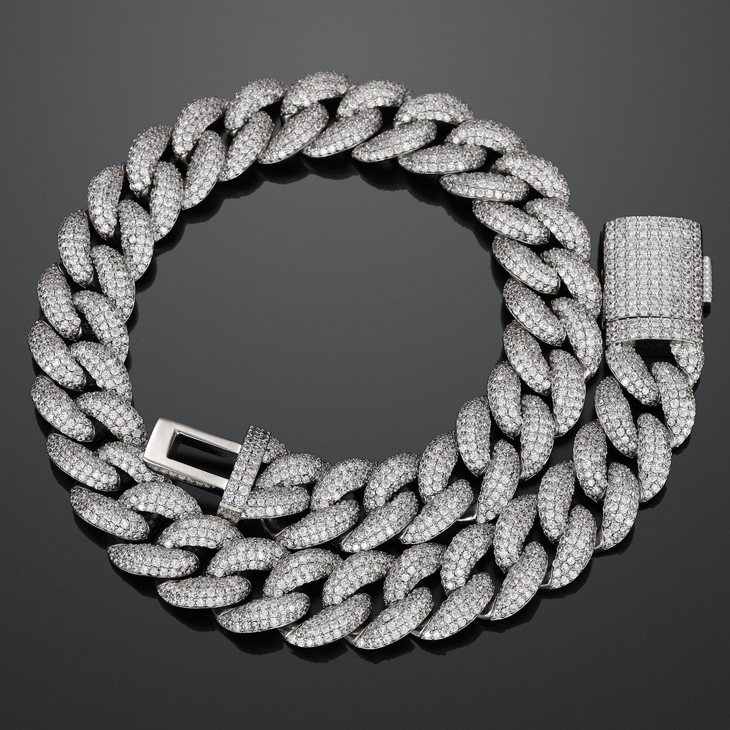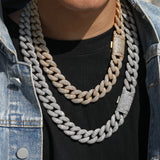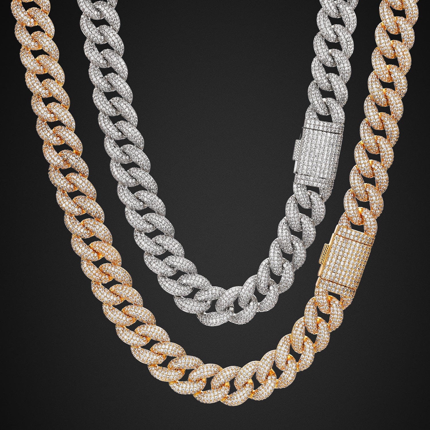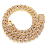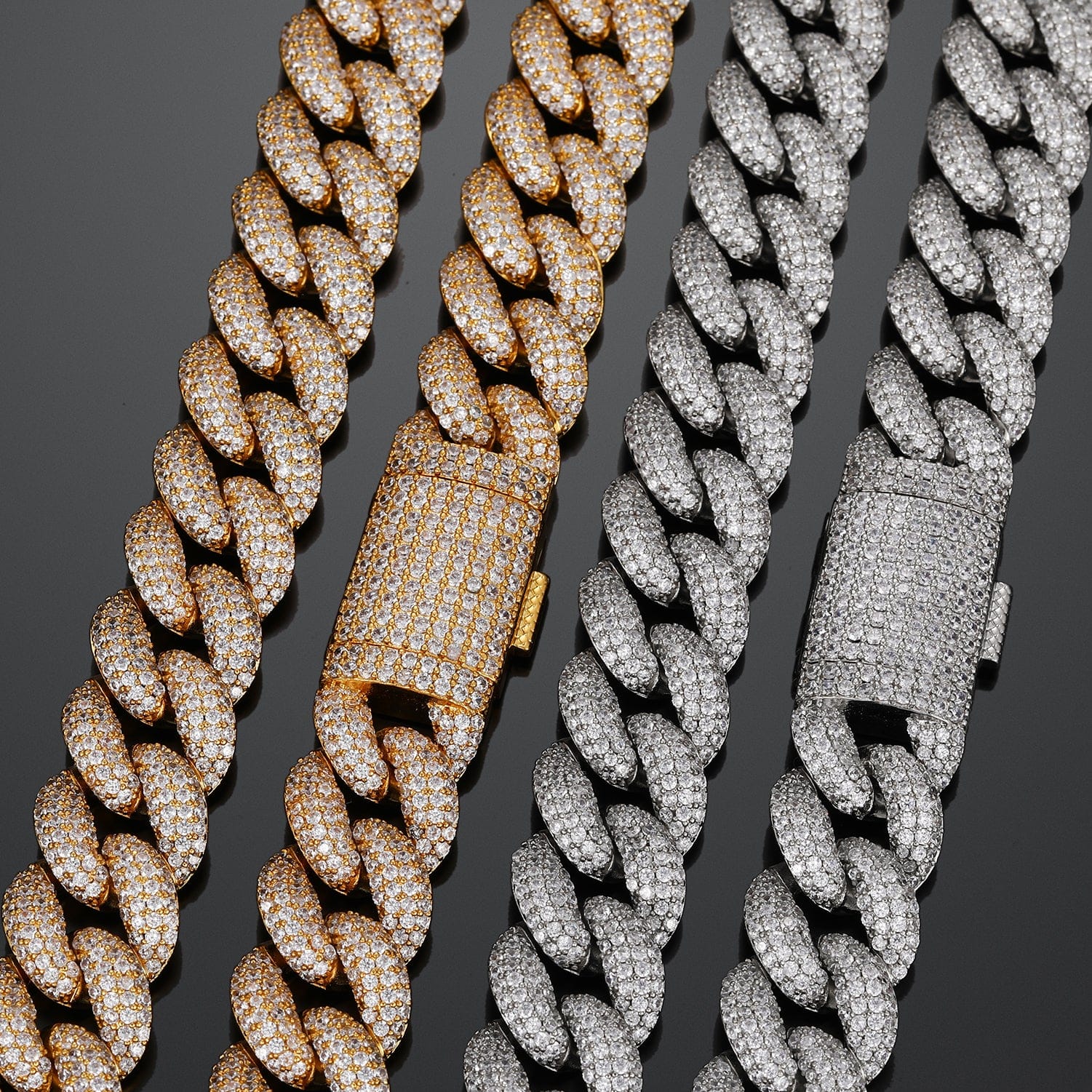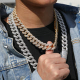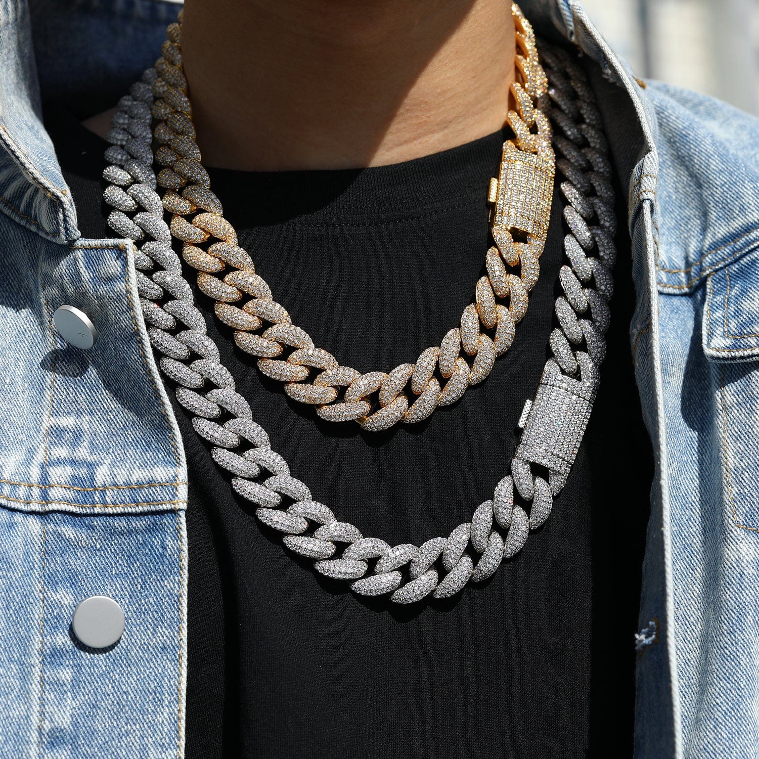 The open-link structure enhances flexibility, while the fully iced clasp completes the chain with a seamless, flawless finish. With its thick 20MM profile, premium gold and silver tone plating, and heavyweight feel, this chain stands out in any setting nightlife, events, photoshoots, or daily wear for those who love luxury with presence.