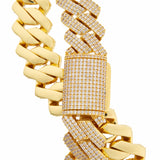 The Nocta Vince 25MM Haute Cuban Chain is built for those who want presence, power, and premium shine in every step. This heavyweight showpiece features a bold 25MM flat-link profile, giving it a wide, dominant look that instantly elevates your entire fit. Each open link is meticulously handset with full micro pavé 5A CZ stones, covering the chain from every angle for an intense, high-luxury sparkle normally seen only in custom pieces.