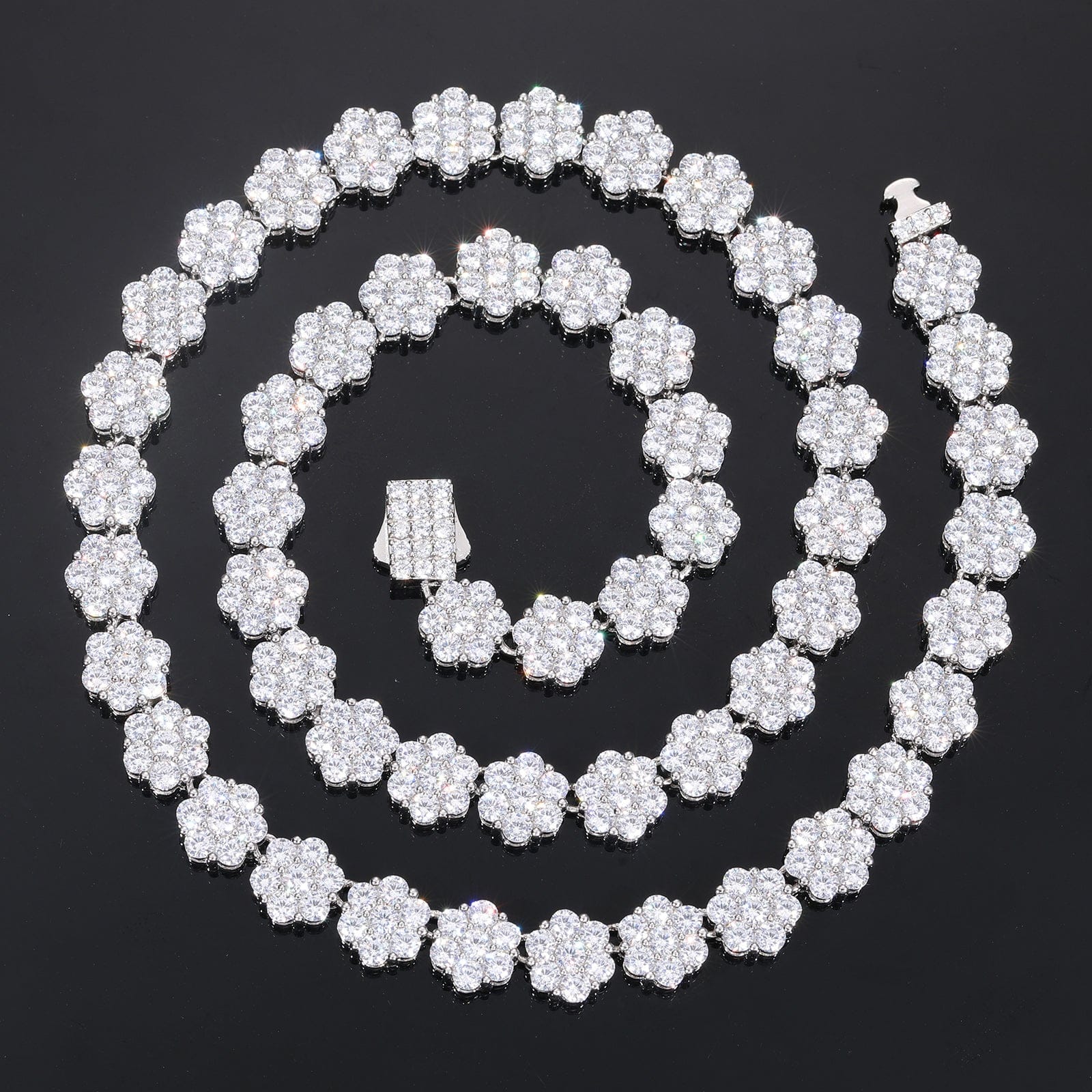 The Nocta Vince Floral Cluster 9MM Chain brings a unique, elegant twist to classic jewelry styling. Each link features a 7-stone rosette floral cluster, handset with bright CZ stones that create a soft but eye-catching sparkle. The 9MM width gives it a refined profile — bold enough to stand out but sleek enough for everyday wear.