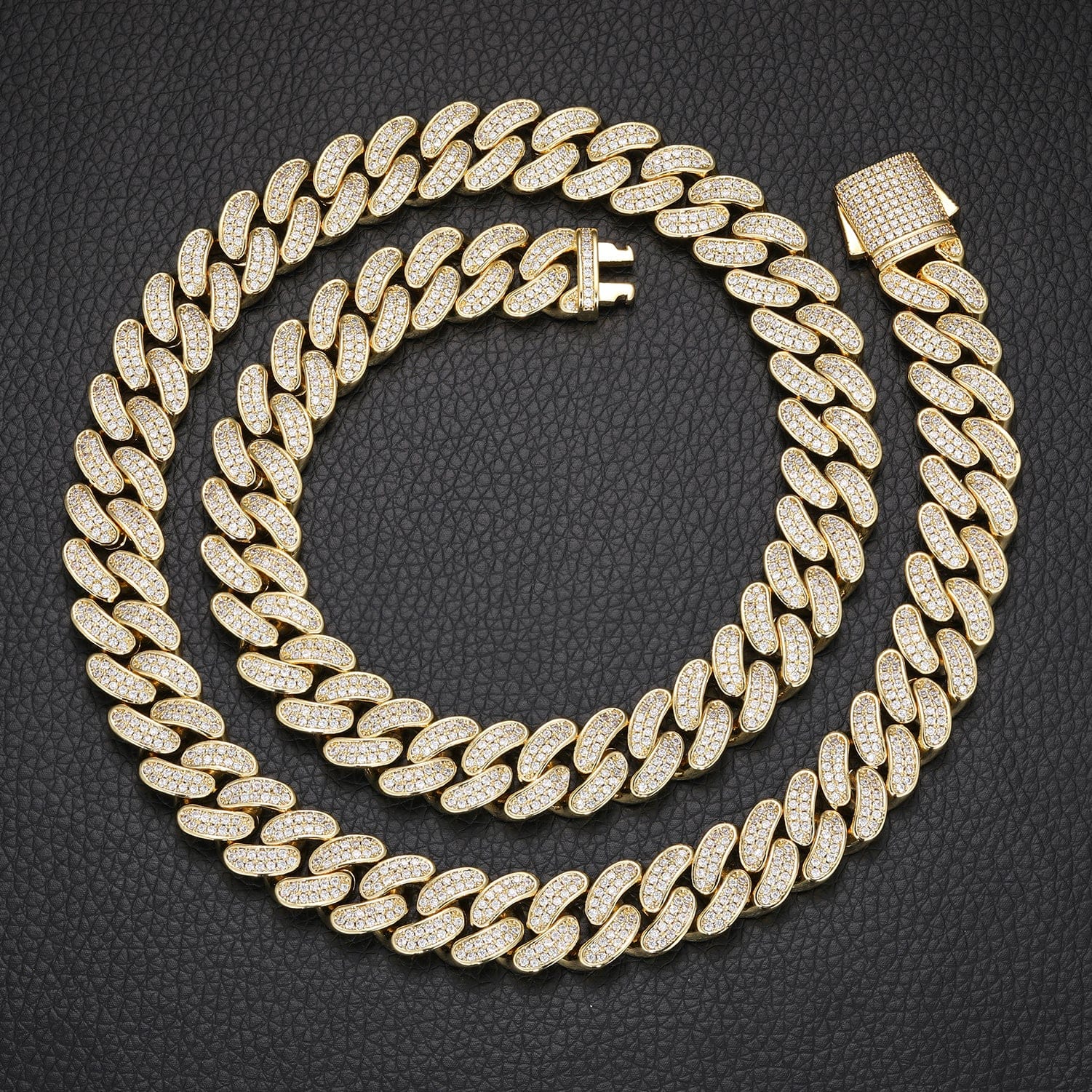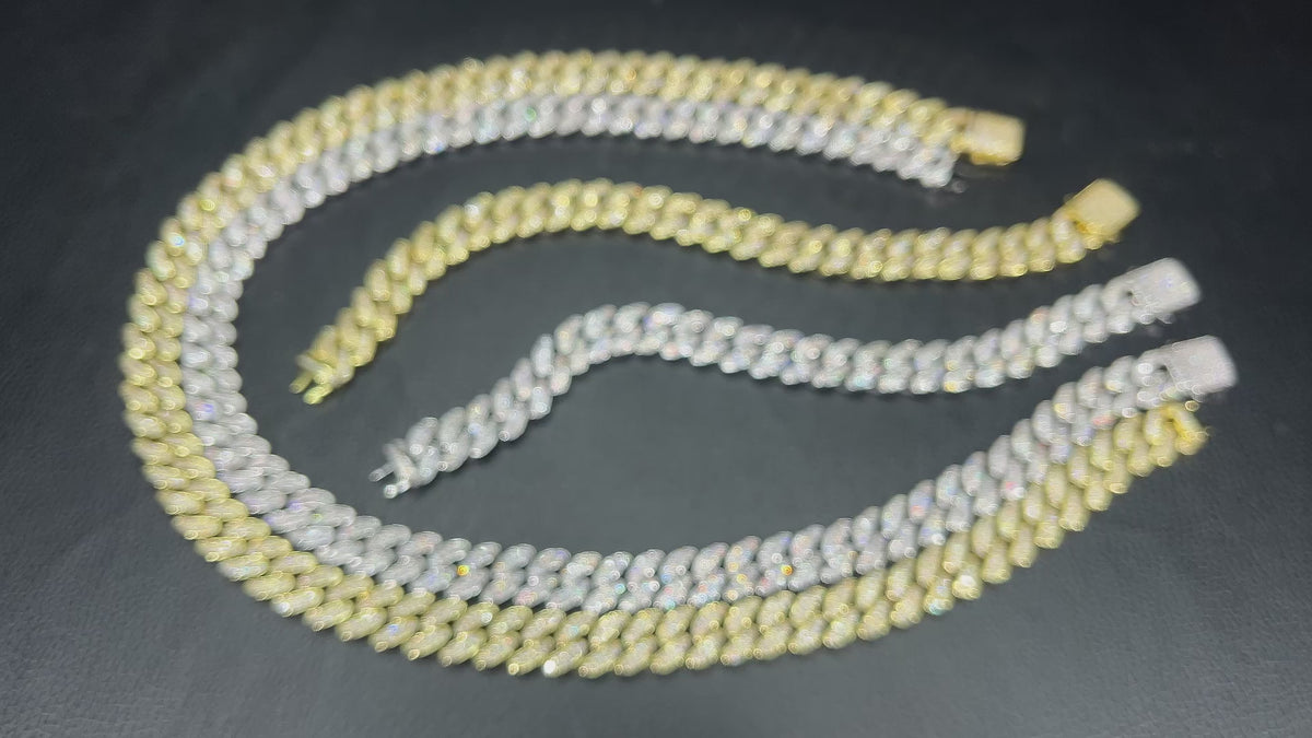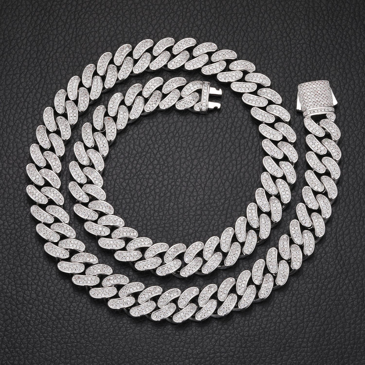 The Nocta Vince 12MM Dual-Row Cuban Chain adds a refined twist to the classic Cuban link with its distinctive two-row micro-bead pavé setting. Instead of a standard stone layout, each link is detailed with tightly arranged micro-bead CZ stones that create a soft, continuous shimmer across the chain.