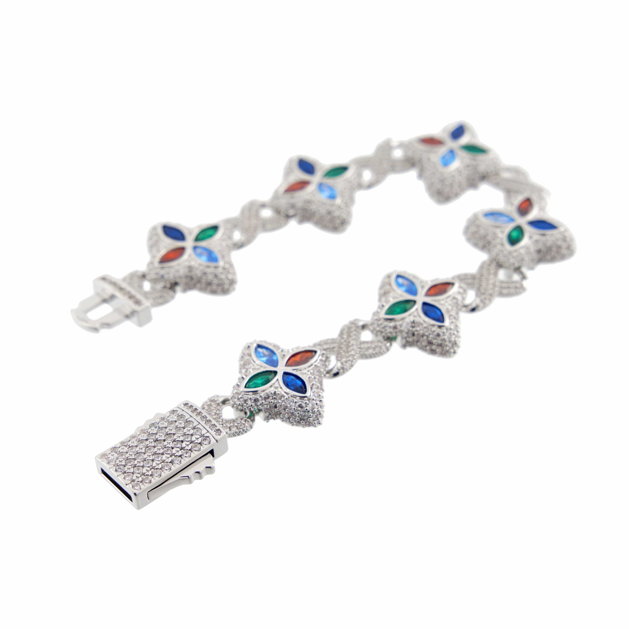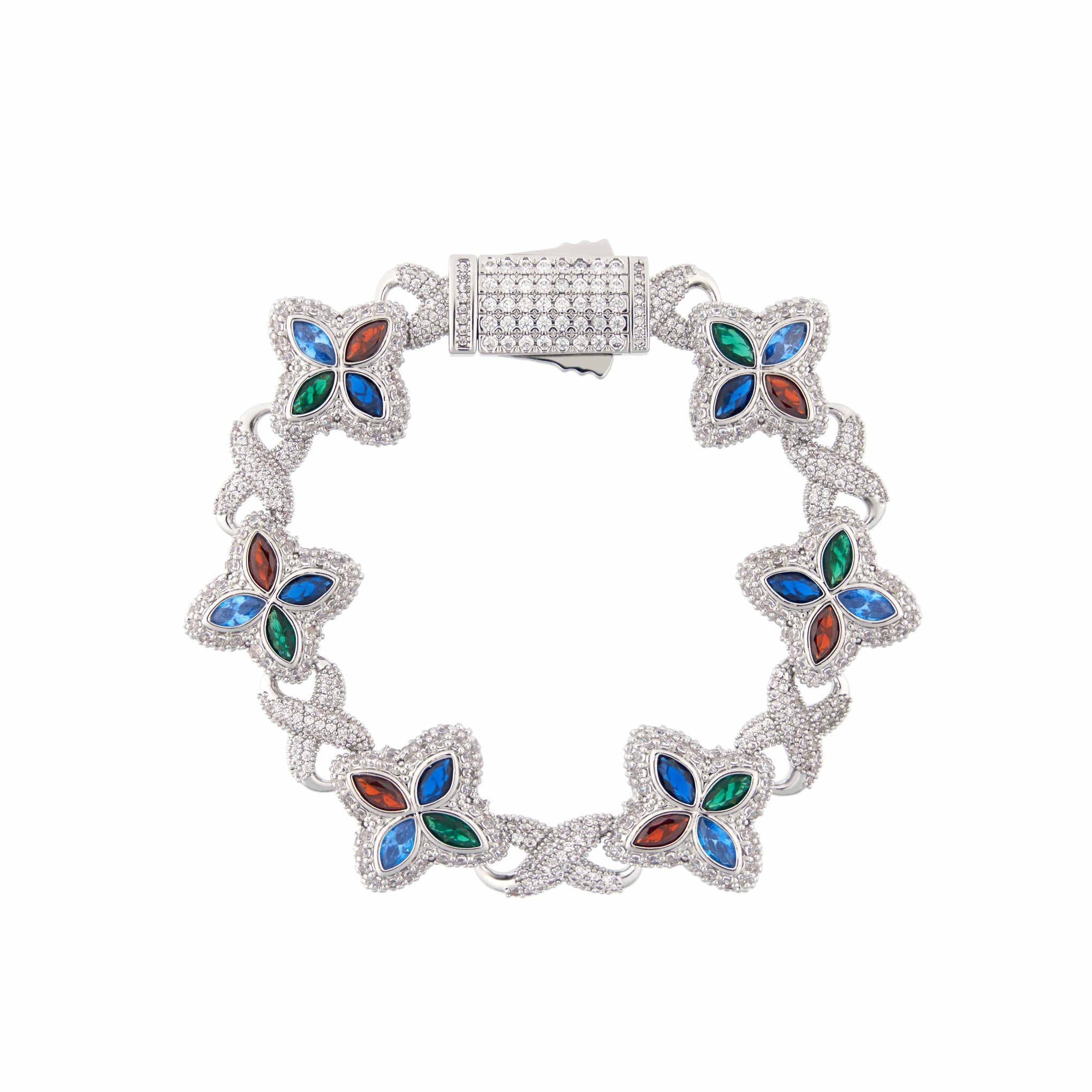 Add a touch of refined elegance to your look with the Nocta Vince Quatrefoil Bracelet, designed with unique floral-inspired motifs that create a standout luxury aesthetic. Each quarterfoil link is embellished with dazzling stones and vibrant enamel accents, giving the bracelet a rich pop of color and an unmistakably high-end feel.